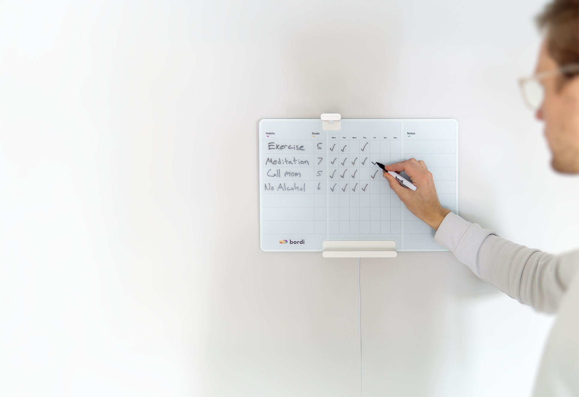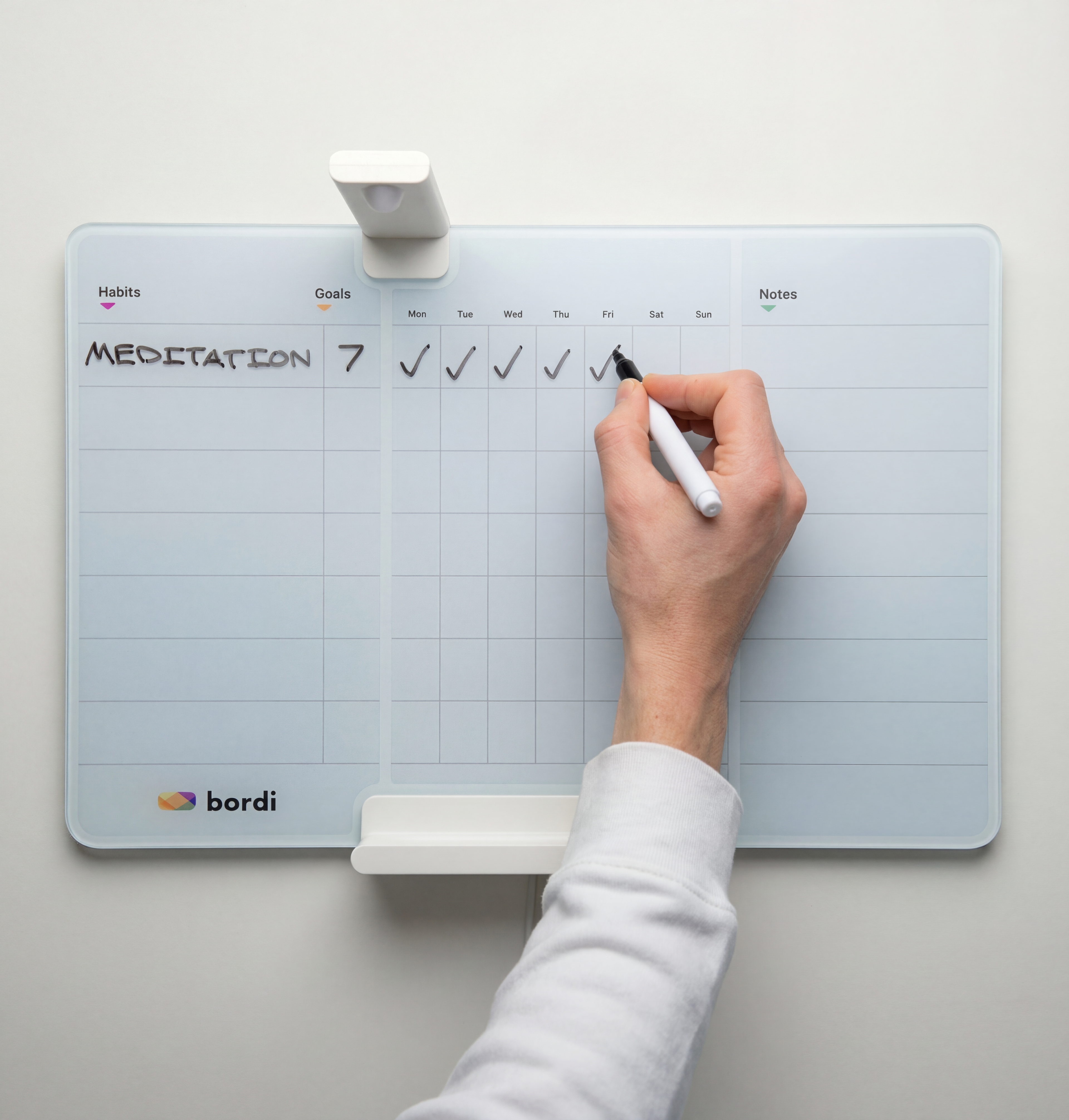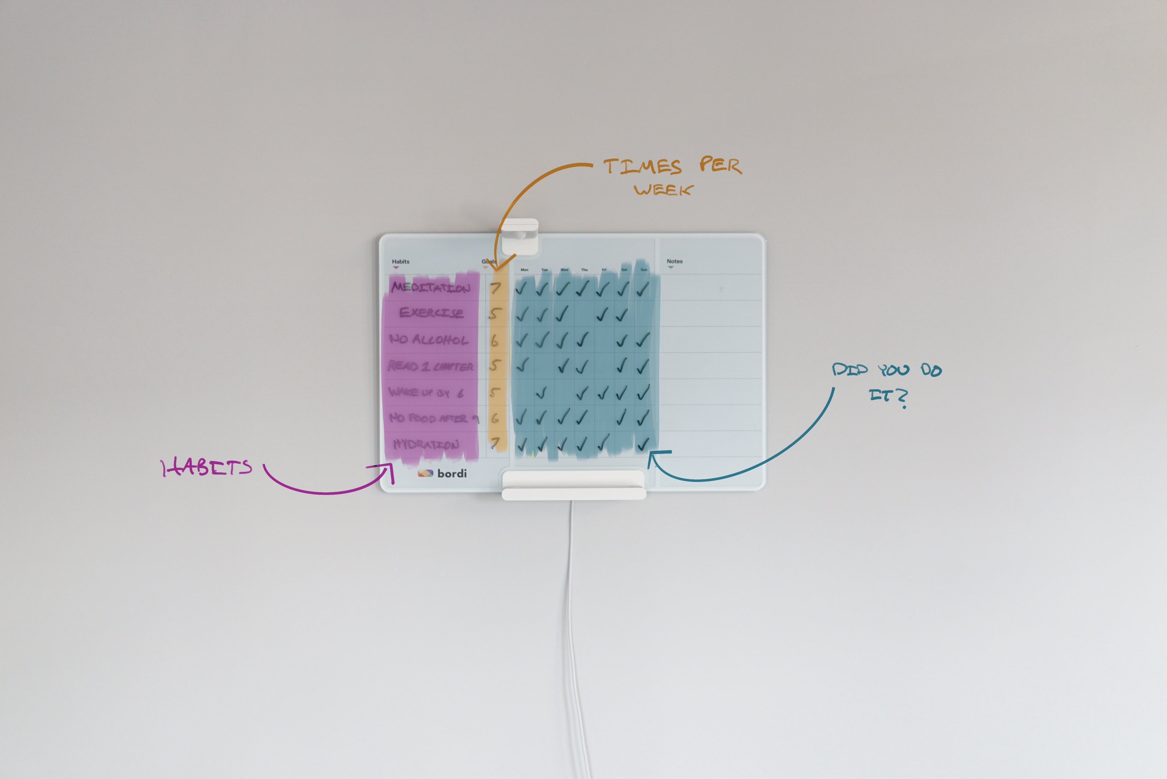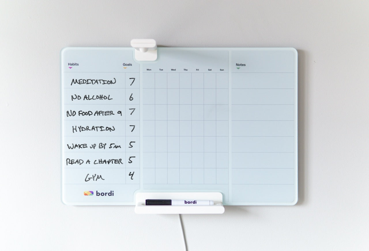Important! Put your Bordi in a room you spend a lot of time. That way youll never forget to track your habits.